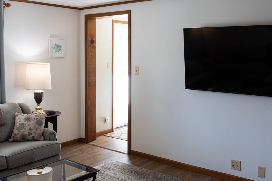Relax in the living room featuring a smart TV with access to your favorite streaming services.